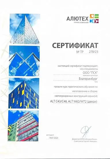 Первая Стекольная Компания (ООО «ПСК») — производственно-монтажная организация, специализирующаяся на комплексном оформлении интерьеров и экстерьеров с применением алюминиевых профилей «АЛЮТЕХ». Мы проектируем, изготавливаем и устанавливаем светопрозрачные конструкции, уделяя особое внимание нестандартным и архитектурно сложным решениям.
