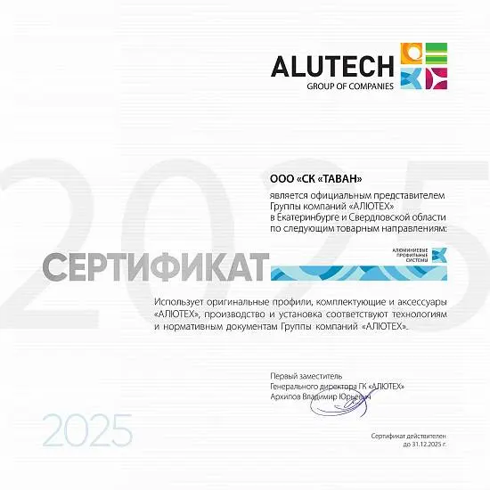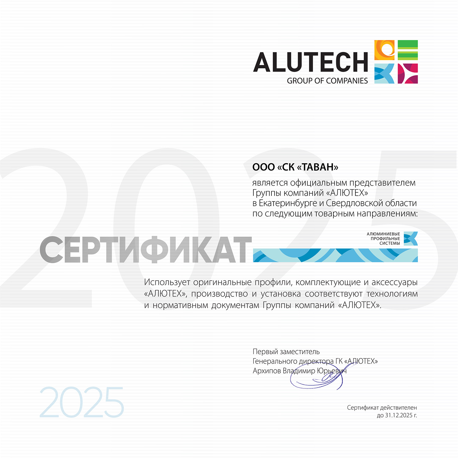 Компания «ТАВАН» — официальный представитель Группы компаний «АЛЮТЕХ» в Екатеринбурге и Свердловской области.