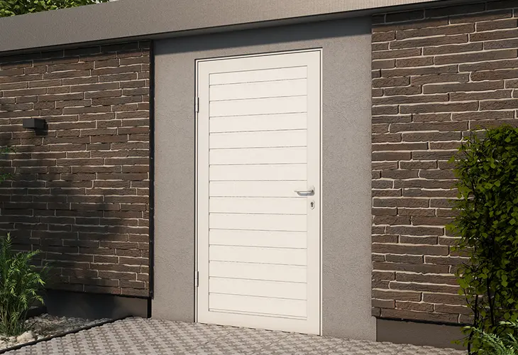 Секционные двери в гараж предназначены для организации отдельного входа. Такое решение помогает экономить ресурс ворот и поддерживать комфортный микроклимат в помещении. Двери оснащены низким порогом, что обеспечивает безопасный и удобный проход для людей всех возрастов.