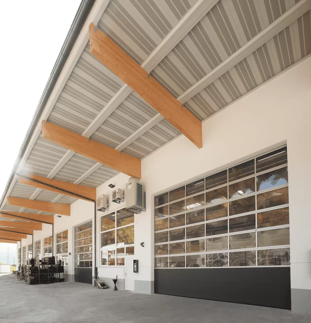 Если для гармоничного вида фасада здания необходимы темные ворота — рекомендуем дополнительно заказать комплект усиливающих профилей, особенно при ширине конструкции более 3,5 м. Данная опция будет полезна и при эксплуатации ворот в регионах с высокой ветровой нагрузкой (приморские или степные районы) или в отапливаемых помещениях при низких температурах воздуха снаружи.